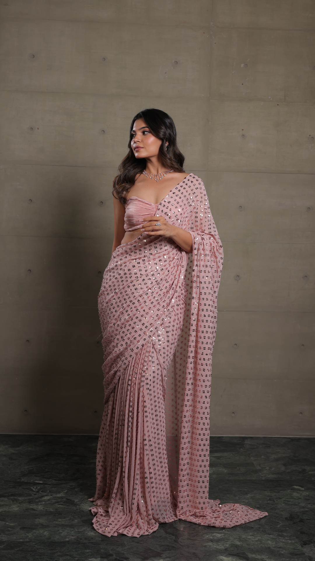 Our stunning AISHA Saree, designed for effortless elegance and a flawless drape. This saree combines the perfect amount of bling and flow, making it the ultimate choice for cocktail parties and sangeet nights. Paired with a chic tube top, it offers a modern twist to traditional wear, ensuring you stand out at every event.