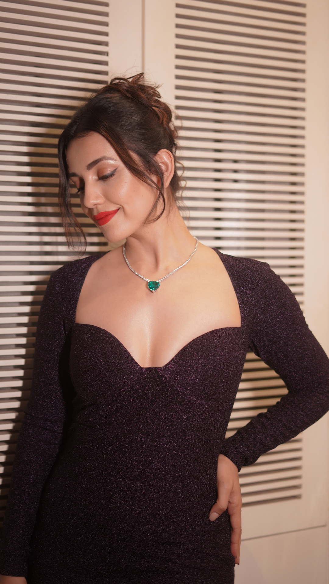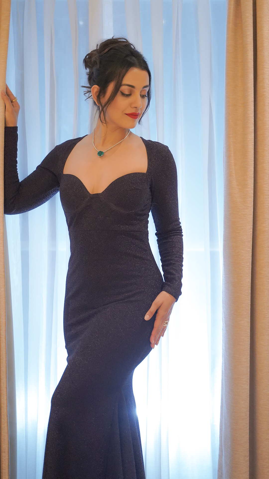 Own the night in our mesmerizing PERIWINKLE mermaid cut dress, featuring shimmery fabric in deep purple colour, full sleeves and sweetheart neckline. This chic party dress has a subtle shine, making it an elegant evening wear outfit for confident women.